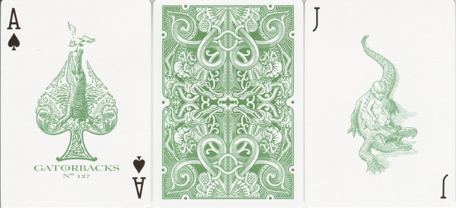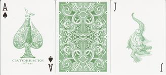 Dies ist das erste Deck der USPCC, das sowohl auf dem Back, als auch auf der Front metallisch-grüne Tinte nutzt.